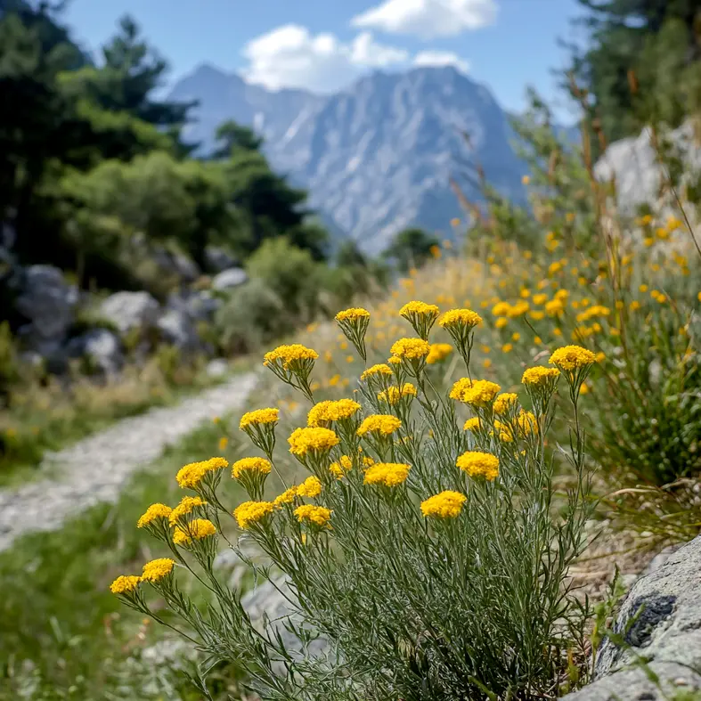 L’immortelle de Corse… son nom évoque déjà une promesse d’éternité, une résistance à l’usure du temps. Dans la tradition corse, cette petite fleur jaune soleil, qui pousse sur les terrains secs et rocailleux, n’est pas seulement une plante, c’est un symbole. Un symbole de résilience, de force face aux éléments, tout comme les femmes corses, elles-mêmes ancrées dans leur terre et fières de leur héritage.