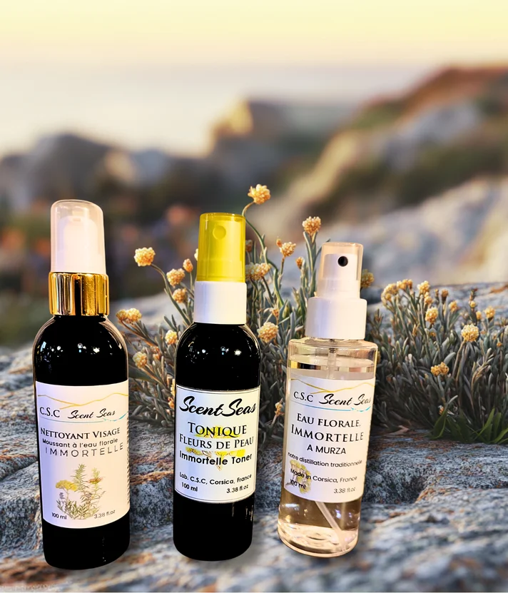 - Hydrolat d'Immortelle : Cette eau florale, véritable trésor discret, offre une douceur bénéfique pour apaiser les peaux sensibles au quotidien.