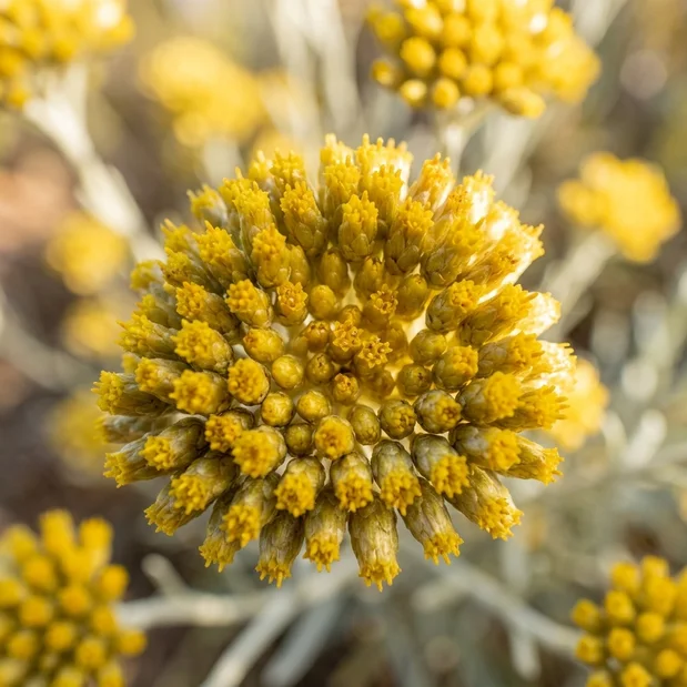 L'Hélichryse italienne, ou Helichrysum italicum, plus communément appelée Immortelle, est bien plus qu'une simple plante pour nous.
