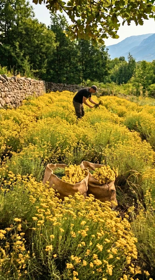 La Récolte de l'Immortelle : Un Geste Précis et Respectueux